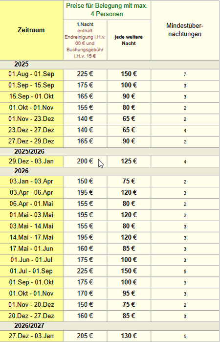 Preise und Belegungskalender